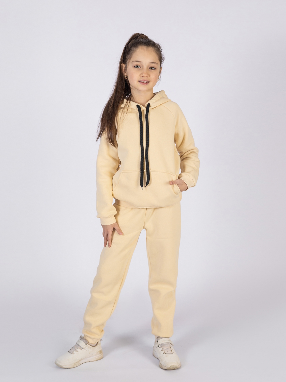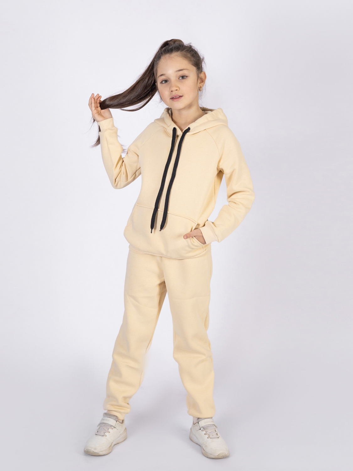 Купить оптом 296-СЛ. Свитшот с капюшоном + Штаны, хлопок 65%, 35% ПЭ, 3-х нитка (начес) сливочный 98,104,110,116 в Майкопе