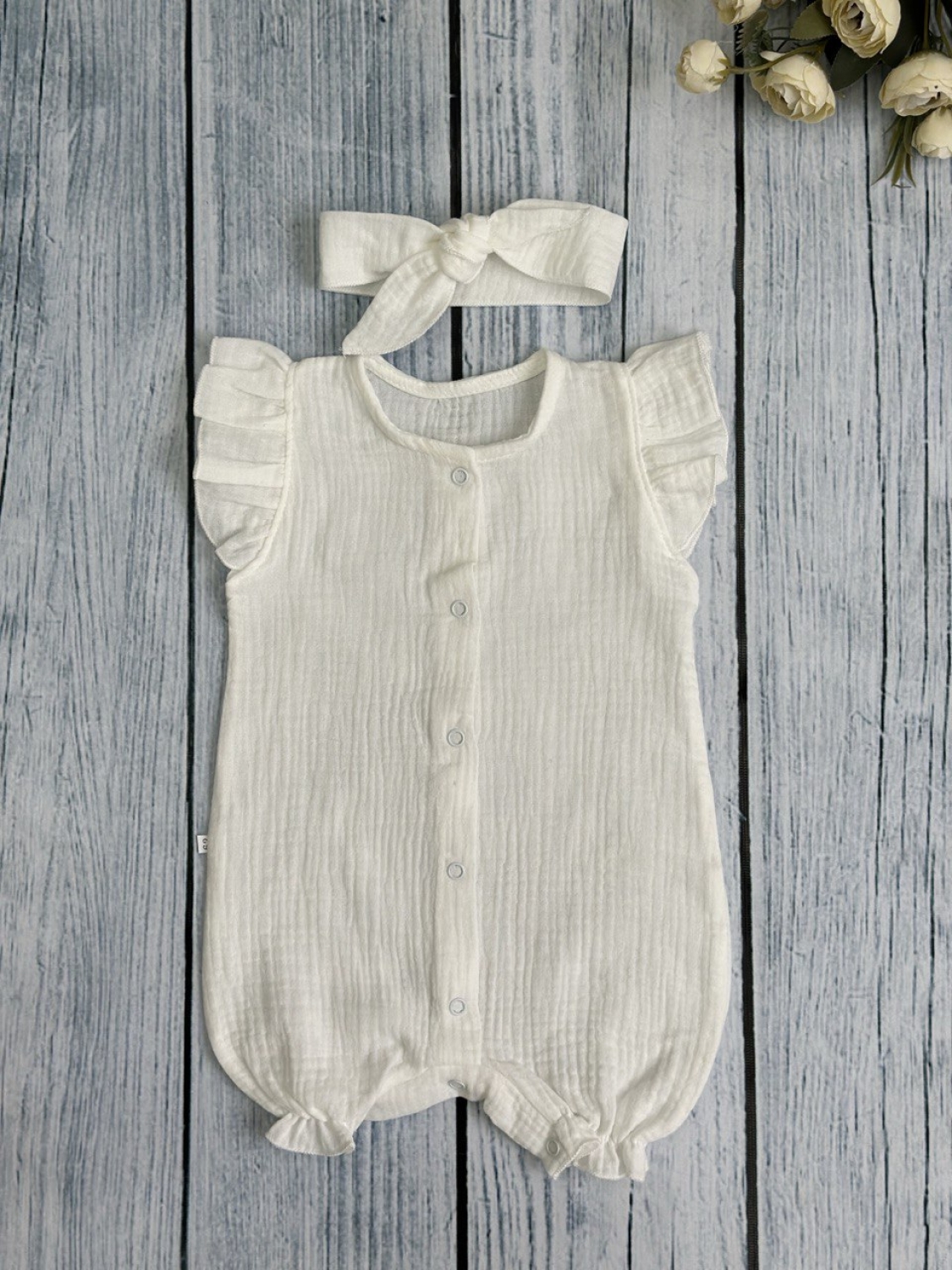 Купить оптом 338-М. Комбинезон детский из муслина, хлопок 100%, размеры 56,62,68, молочный в Майкопе