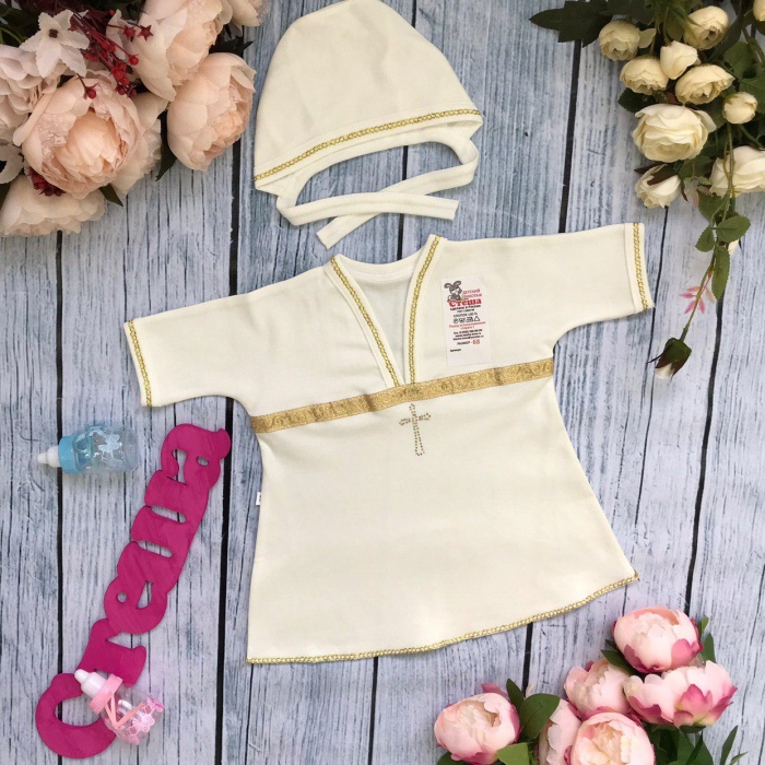 Крестильная рубашка + чепчик (золото).